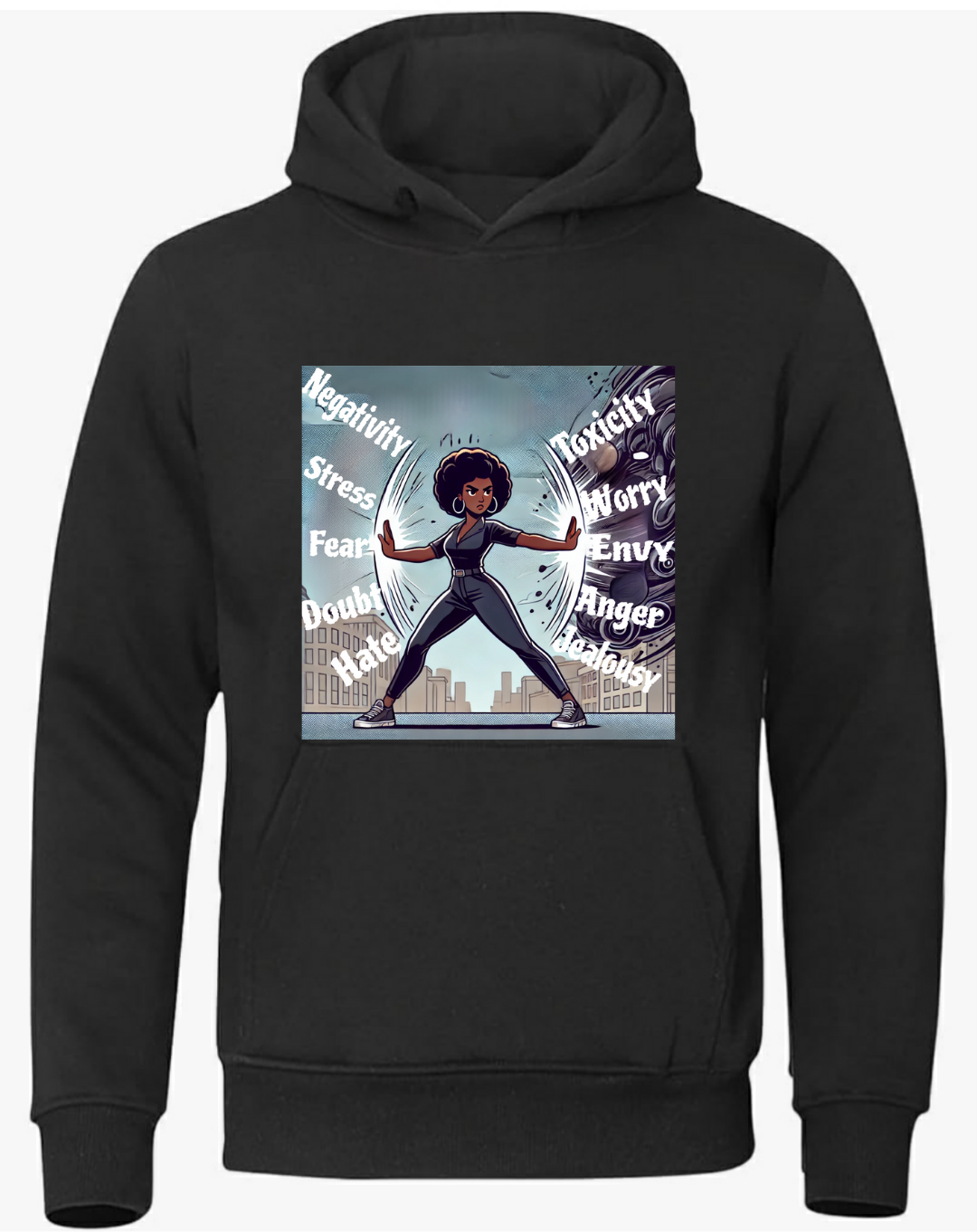 This hoodie is soft and comfortable, perfect for everyday wear. Its versatile design makes it suitable for any occasion. A bold reminder to stay true to yourself and rid yourself of negative energy.