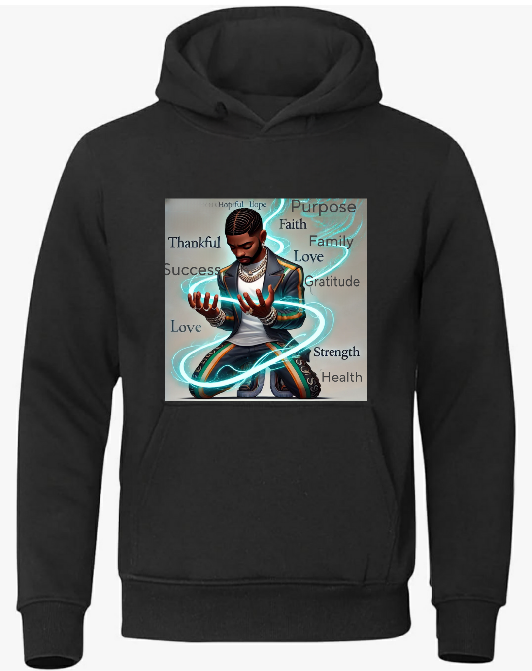 This black hoodie is designed with a positive purpose. Made with a classic black color, it offers a versatile and sleek style for any occasion. The comfortable and soft material ensures a perfect fit, while the hoodie design provides extra coverage for those chilly days. Invest in a piece that embodies both style and comfort.