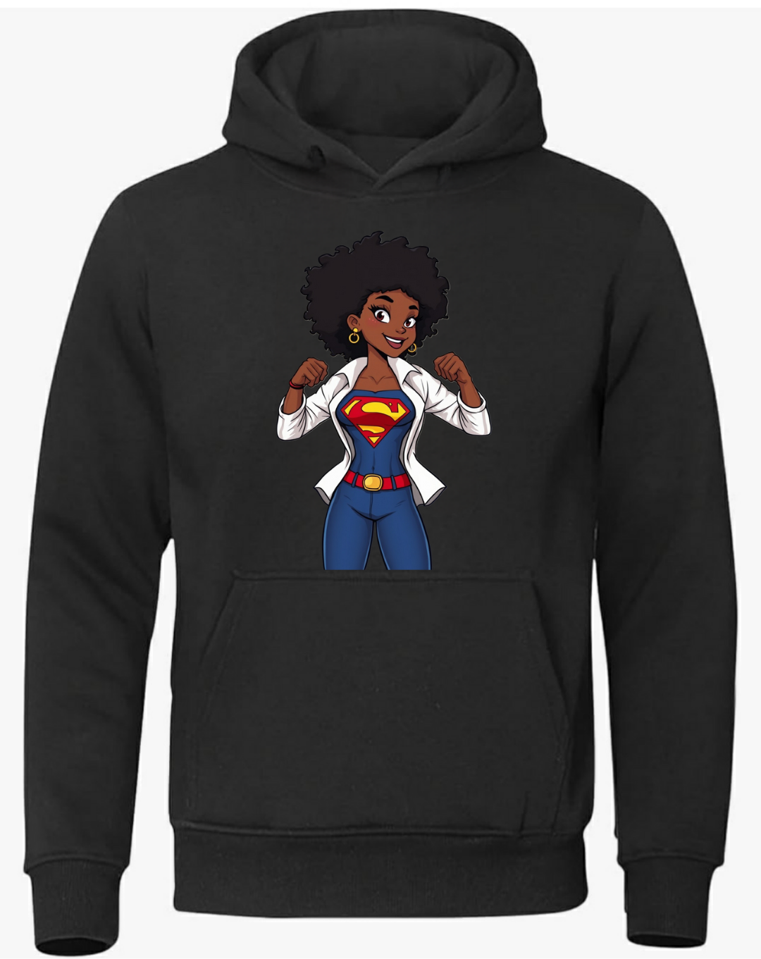 This black hoodie is the perfect addition to any wardrobe. Made with high-quality materials, it offers both comfort and style. Its classic black color is versatile and timeless, making it suitable for any occasion. Stay warm and fashionable with this "Superwoman 3" hoodie.