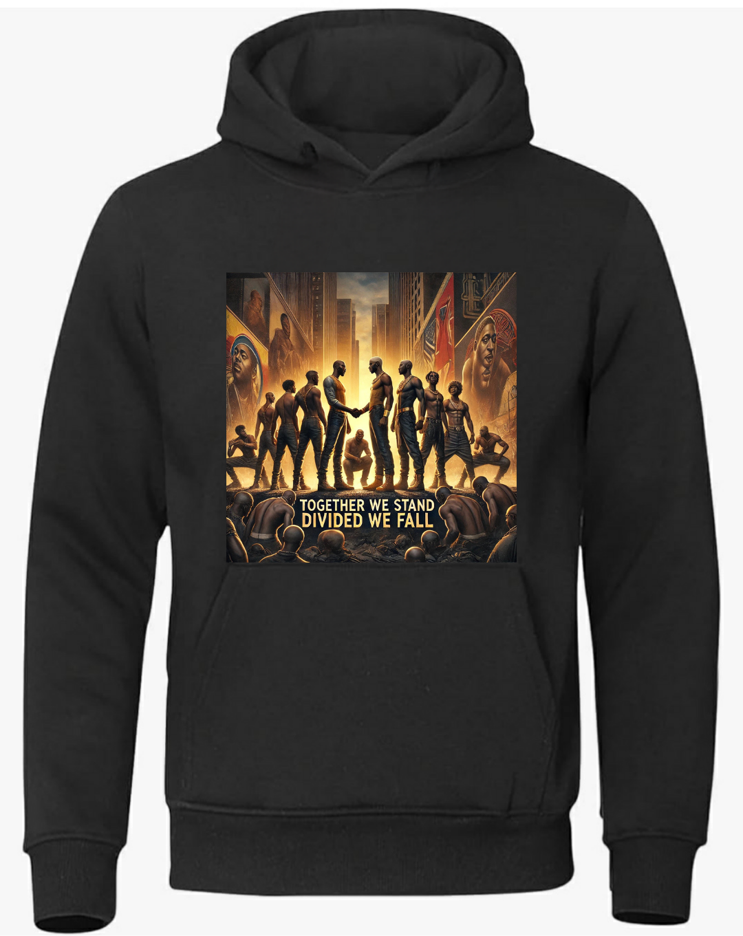 Experience comfort and style with our black "Together we stand" hoodie. Made with high-quality materials, this hoodie provides warmth and durability. Show your support for unity and solidarity with this timeless piece.