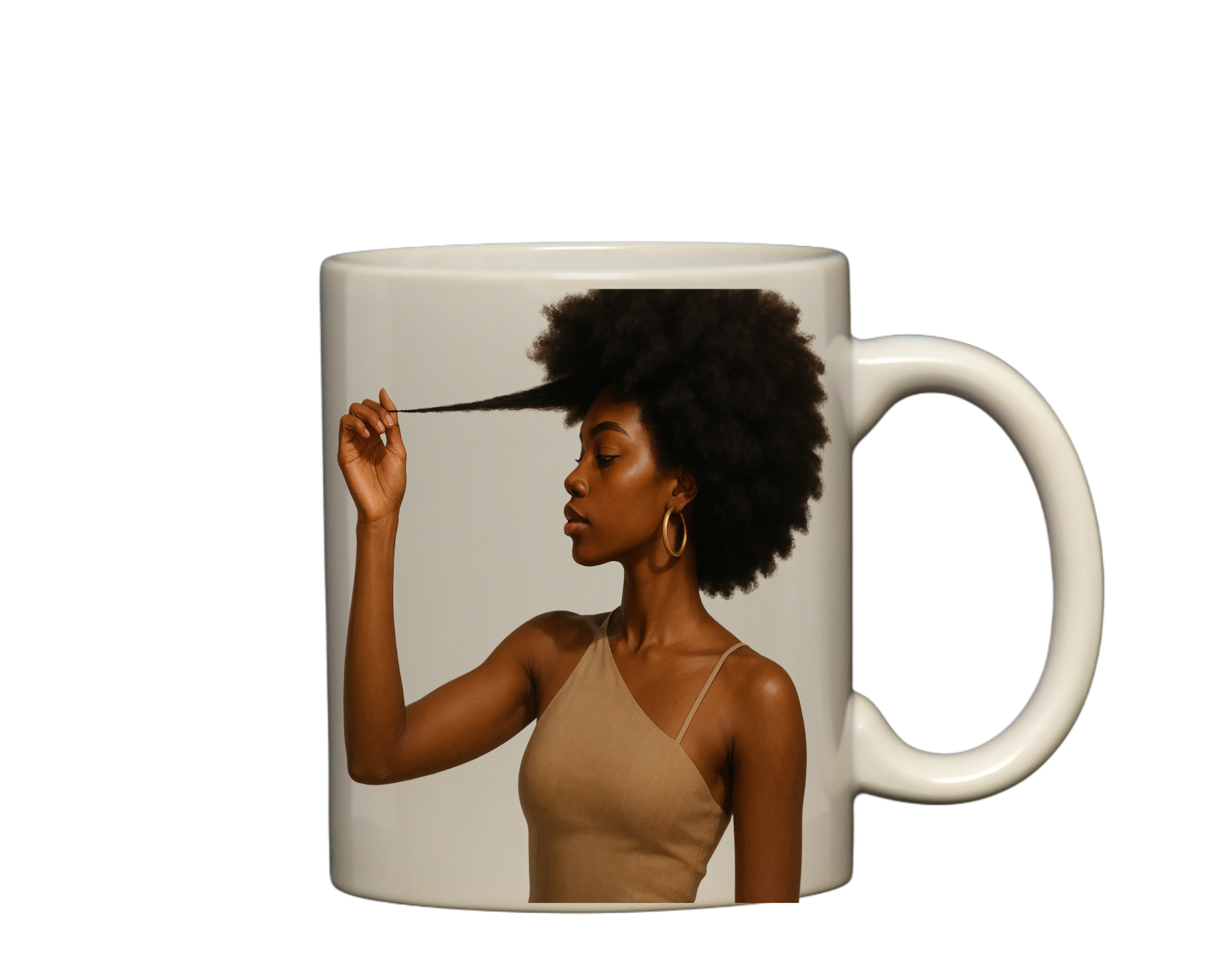 Celebrate your love for your natural hair with the BLACK WOMAN AFRO LOVE MUG. With its custom design and 11oz size, this mug is perfect for any black woman proud of her afro. Embrace your unique beauty and show off your afro love with every sip.