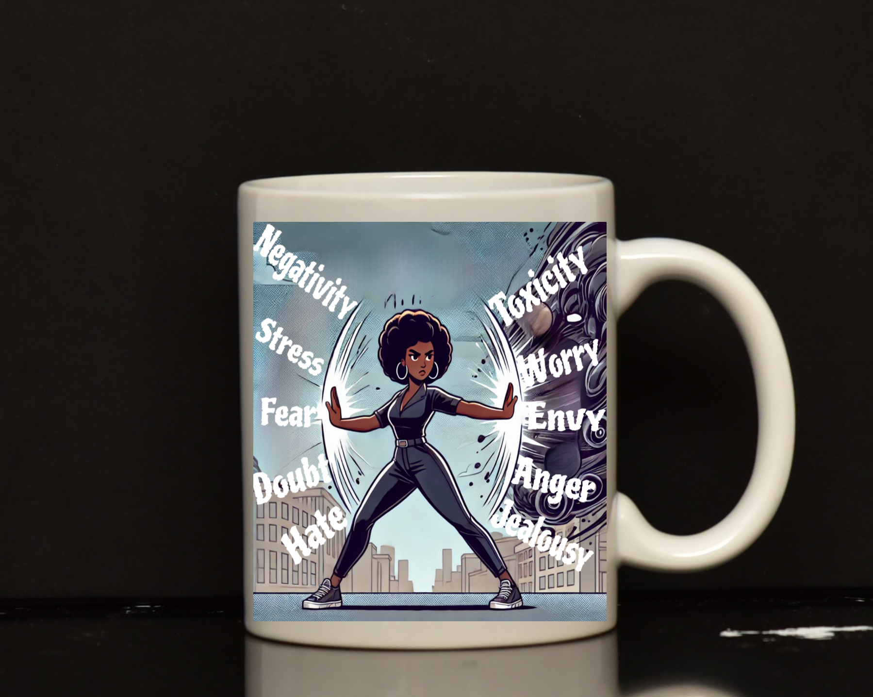 Boost your energy and block negativity with our hand-designed 11oz mug. Perfect for any beverage, this mug uses its unique design to create a positive and uplifting experience. Expertly crafted to help you start your day on the right foot.