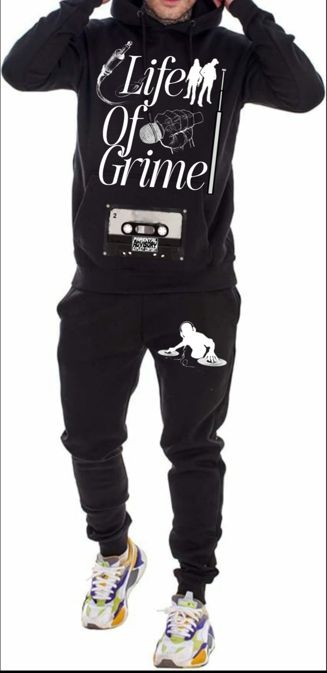 Stay stylish with our LIFE OF GRIME trackie. This custom designed tracksuit features the new upcoming brand Built on Grime. Represent your love for grime music. while making a statement in fashion. Be bold and stand out from the crowd with this unique set that represents London culture.