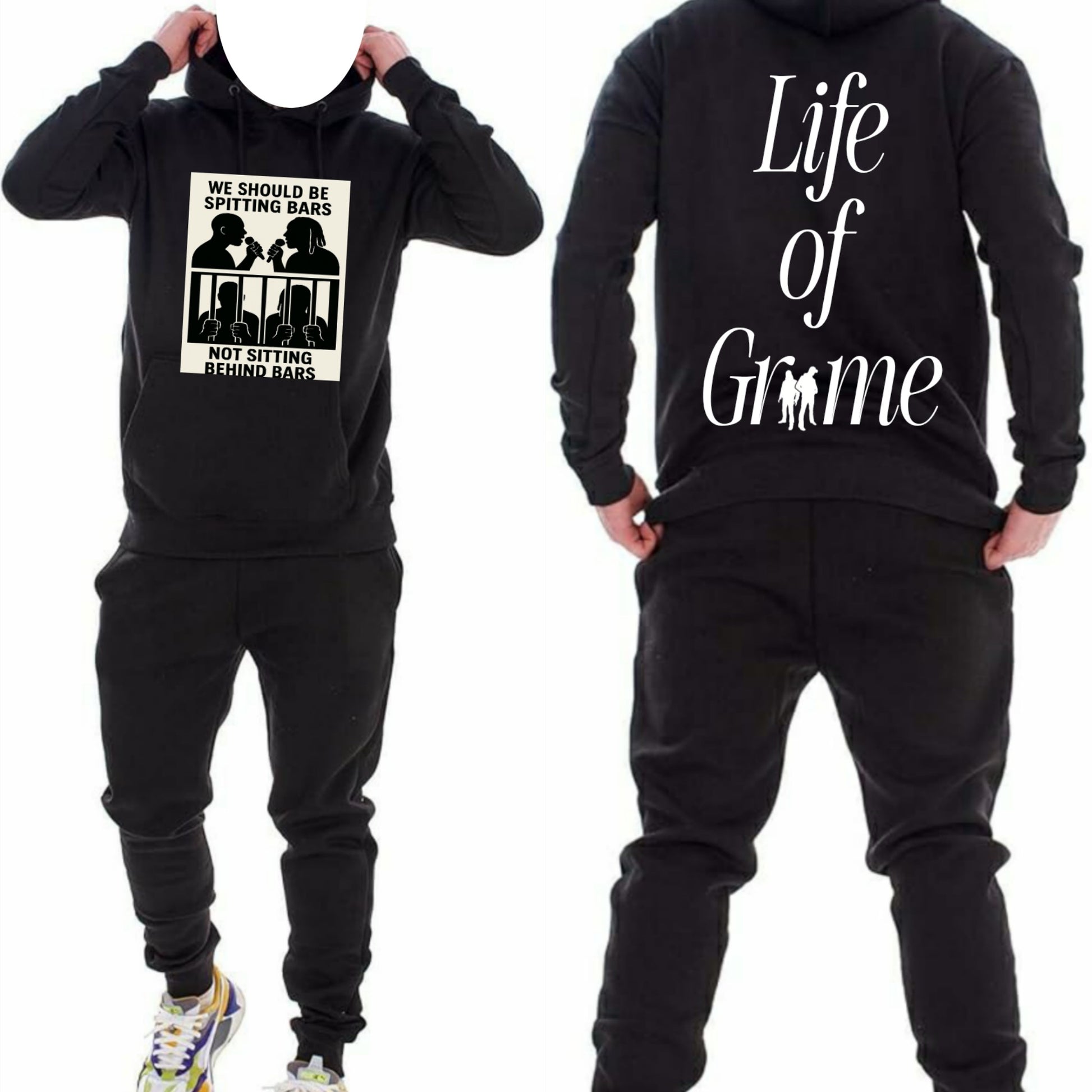 Stay stylish with our LIFE OF GRIME trackie. This custom designed tracksuit features the new upcoming brand Built on Grime. Represent your love for grime music. while making a statement in fashion. Be bold and stand out from the crowd with this unique set that represents London culture.