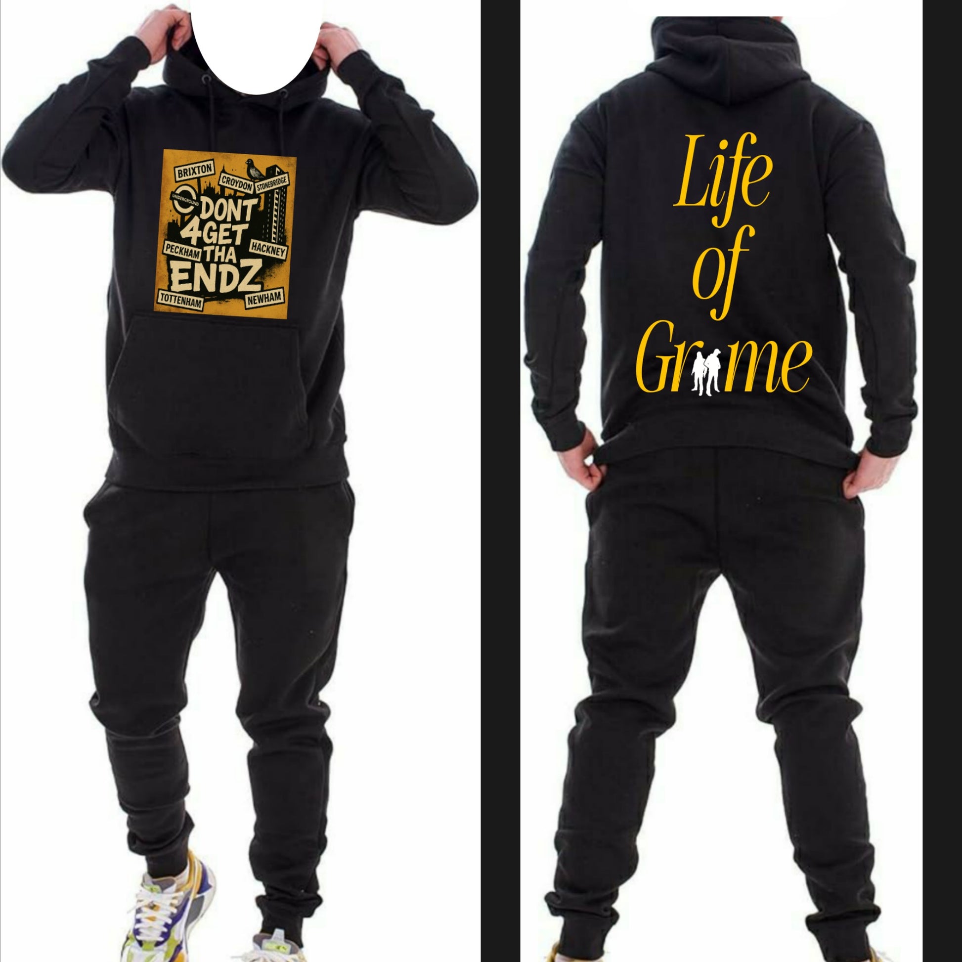 Stay stylish with our LIFE OF GRIME trackie. This custom designed tracksuit features the new upcoming brand Built on Grime. Represent your love for grime music. while making a statement in fashion. Be bold and stand out from the crowd with this unique set that represents London culture.