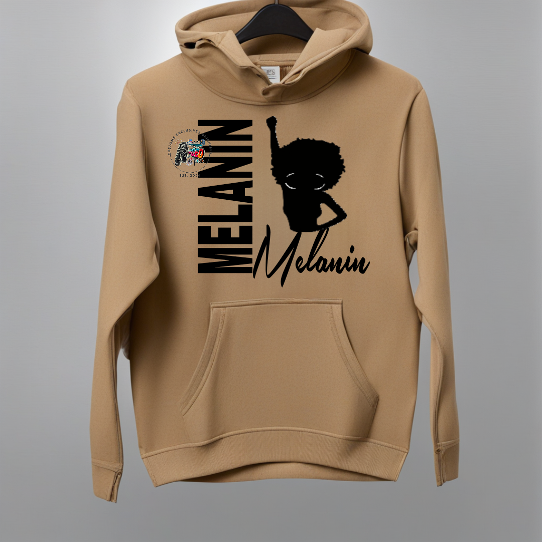 The Melanin Afro Black Power is a custom designed hoodie that celebrates the power of melanin queens. Made with high-quality materials, this hoodie showcases the beauty and strength of melanin skin in a simple yet powerful design. Embrace your queenship and make a statement with the Melanin hoodie.