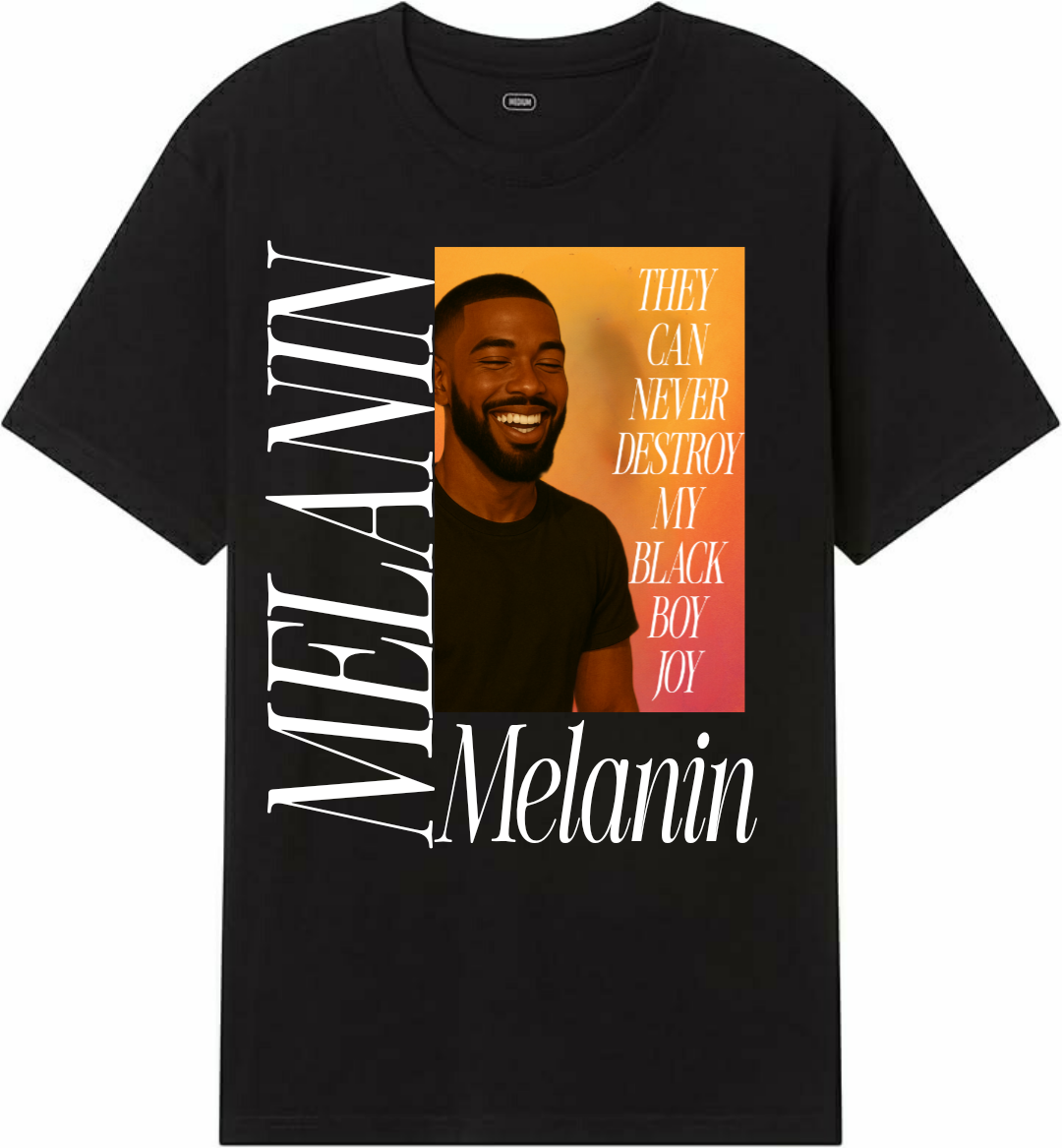 The Melanin Tee is a custom designed t-shirt that celebrates black boy joy and the power of melanin skin. Made with high-quality materials, this shirt showcases the beauty and strength of melanin skin in a simple yet powerful design. Embrace your natural beauty and make a statement with the Melanin Tee.