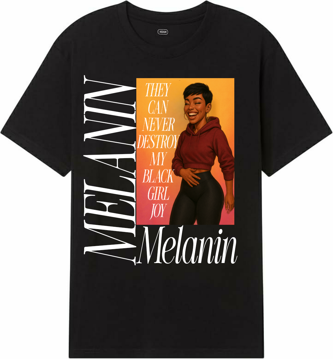 The Melanin Tee is a custom designed t-shirt that celebrates black girl joy and the power of melanin skin. Made with high-quality materials, this shirt showcases the beauty and strength of melanin skin in a simple yet powerful design. Embrace your natural beauty and make a statement with the Melanin Tee.