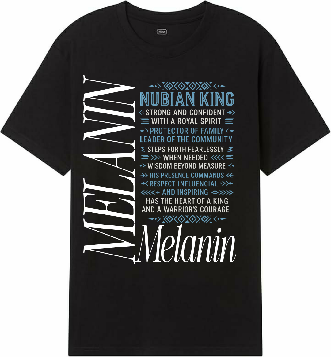 The Melanin King Tee is a custom designed t-shirt that celebrates the power of melanin kings. Made with high-quality materials, this t shirt showcases the beauty and strength of melanin skin in a simple yet powerful design. Embrace your kingship and make a statement with the Melanin Tee.