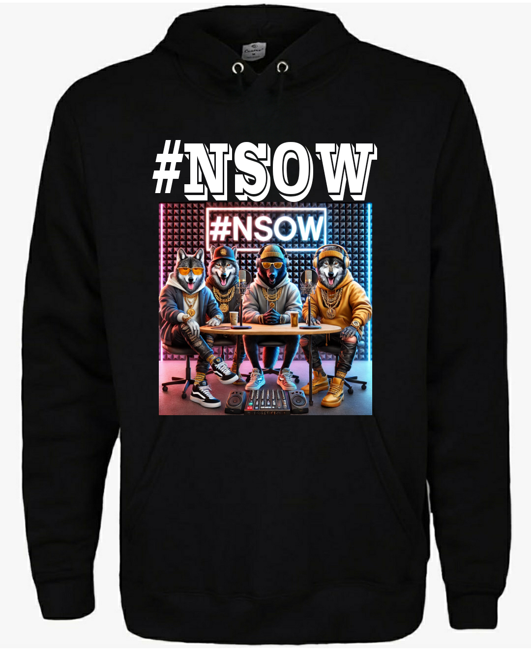 Stay stylish with the #NSOW PODCAST Hoodie Jumper. This custom designed jumper features the new brand #NSOW which stands for NO SHEEP ONLY WOLVES, representing a wolf mentality in fashion. Be bold and stand out from the crowd with this unique and empowering piece. Join the pack and unleash your true self.