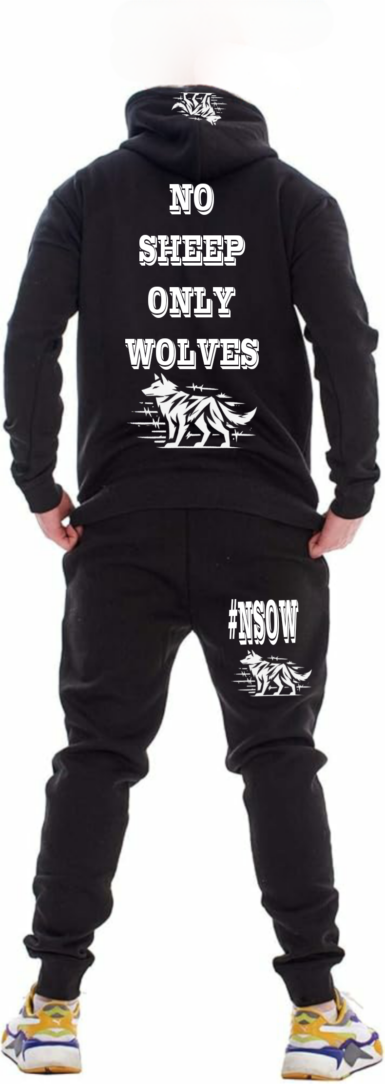 Stay stylish with the #NSOW tracksuit. This custom designed jumper features the new brand #NSOW which stands for NO SHEEP ONLY WOLVES, representing a wolf mentality in fashion. Be bold and stand out from the crowd with this unique and empowering piece. Join the pack and unleash your true self.