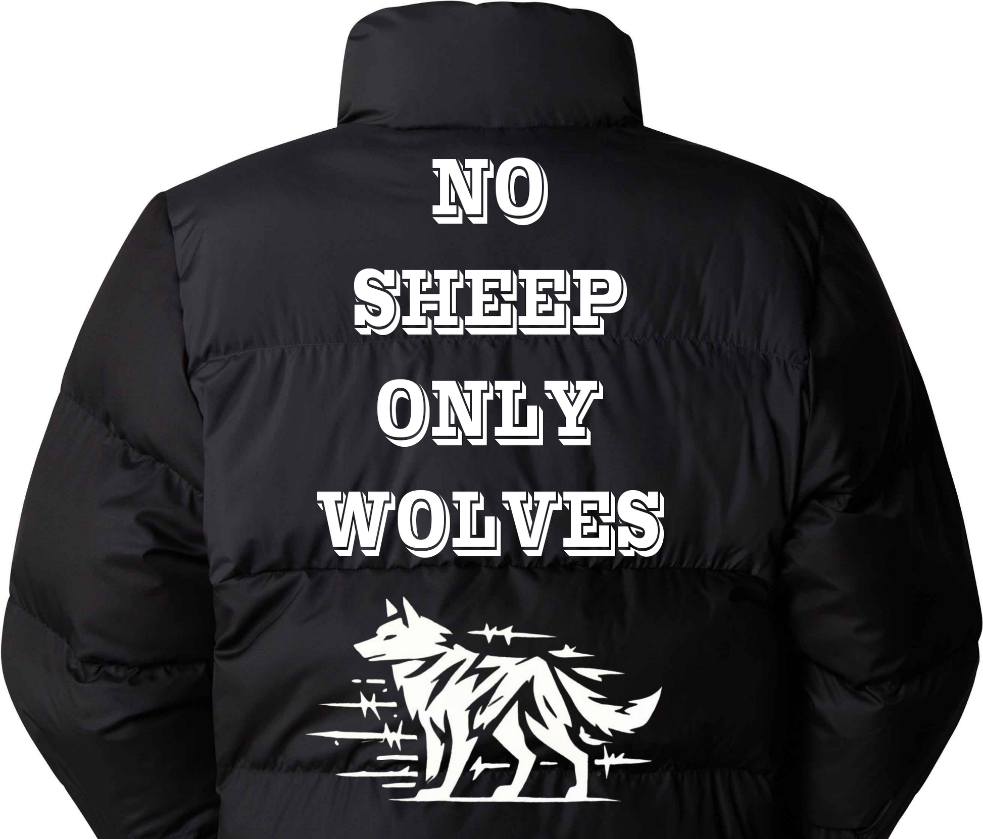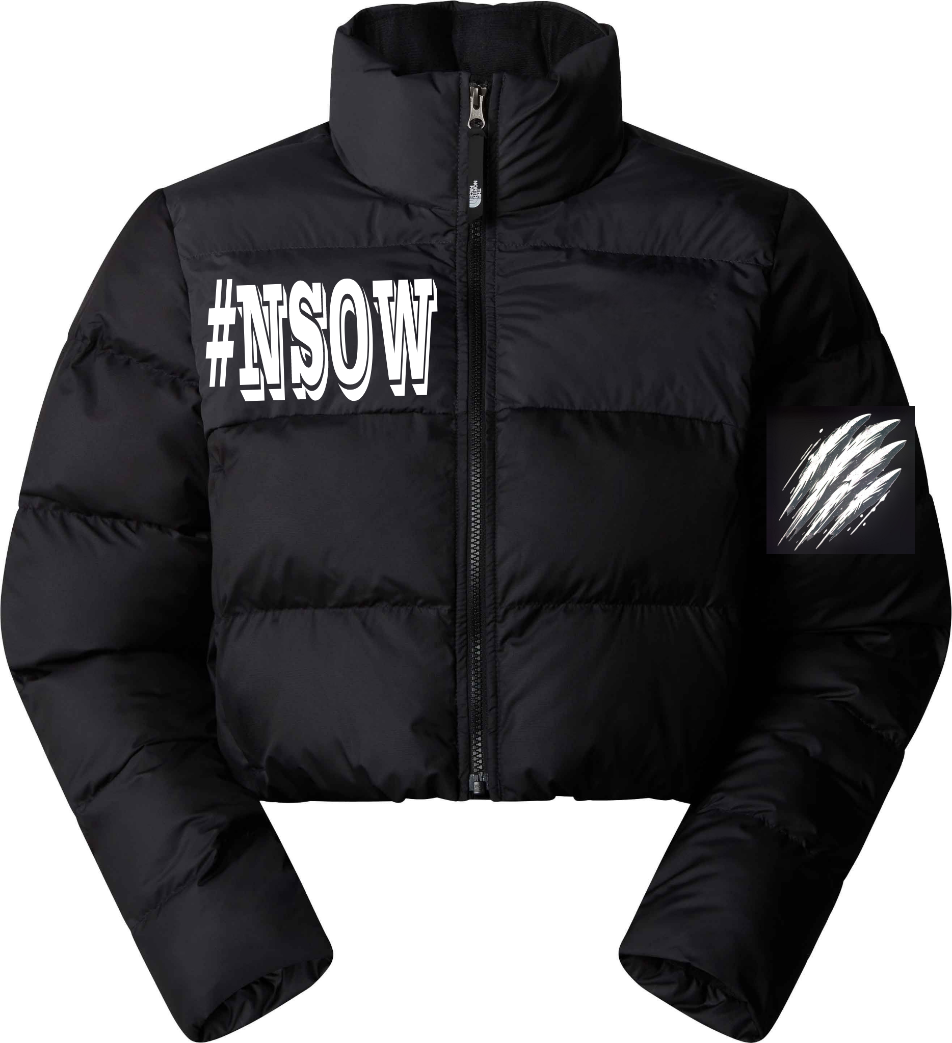 Stay stylish with the #NSOW cropped puffer jacket. This custom designed puffer jacket features the new brand #NSOW which stands for NO SHEEP ONLY WOLVES, representing a wolf mentality in fashion. Be bold and stand out from the crowd with this unique and empowering piece. Join the pack and unleash your true self.