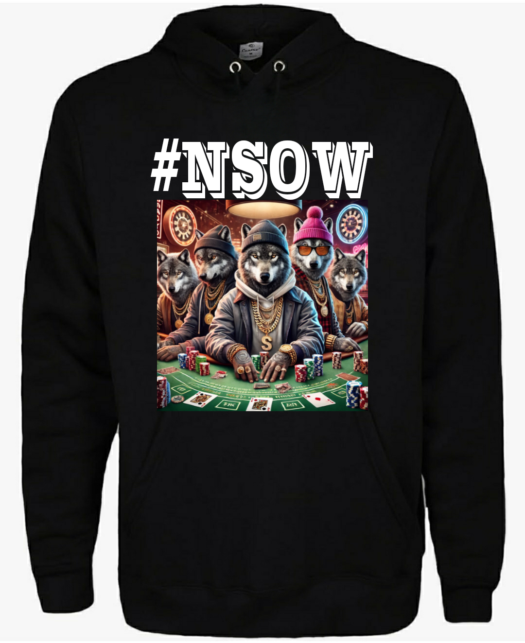 Stay stylish with the #NSOW Wolves driving Hoodie Jumper. This custom designed jumper features the new brand #NSOW which stands for NO SHEEP ONLY WOLVES, representing a wolf mentality in fashion. Be bold and stand out from the crowd with this unique and empowering piece. Join the pack and unleash your true self.