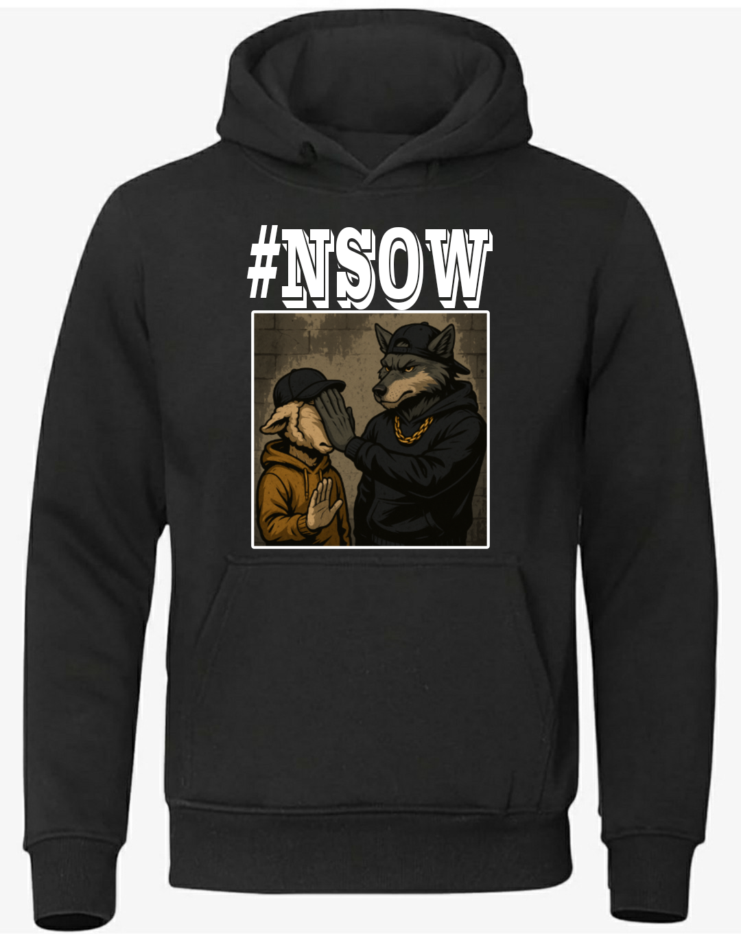 Stay stylish with the #NSOW Wolves logo Hoodie Jumper. This custom designed jumper features the new brand #NSOW which stands for NO SHEEP ONLY WOLVES, representing a wolf mentality in fashion. Be bold and stand out from the crowd with this unique and empowering piece. Join the pack and unleash your true self.