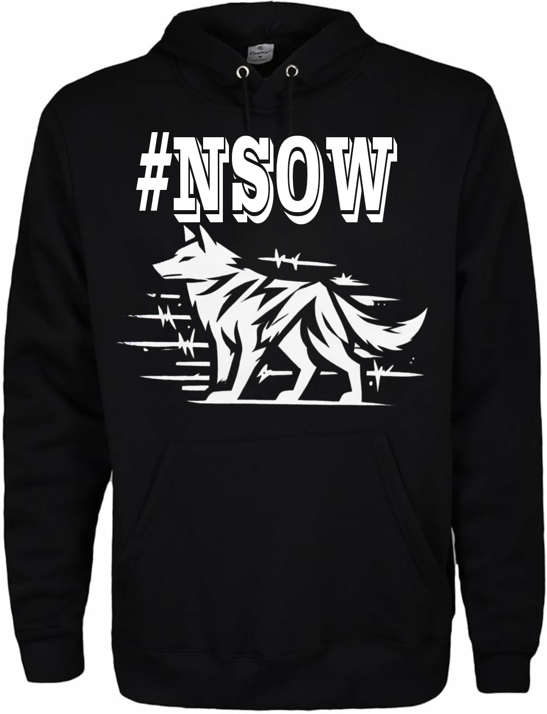 Stay stylish with the #NSOW Wolves logo Hoodie Jumper. This custom designed jumper features the new brand #NSOW which stands for NO SHEEP ONLY WOLVES, representing a wolf mentality in fashion. Be bold and stand out from the crowd with this unique and empowering piece. Join the pack and unleash your true self.