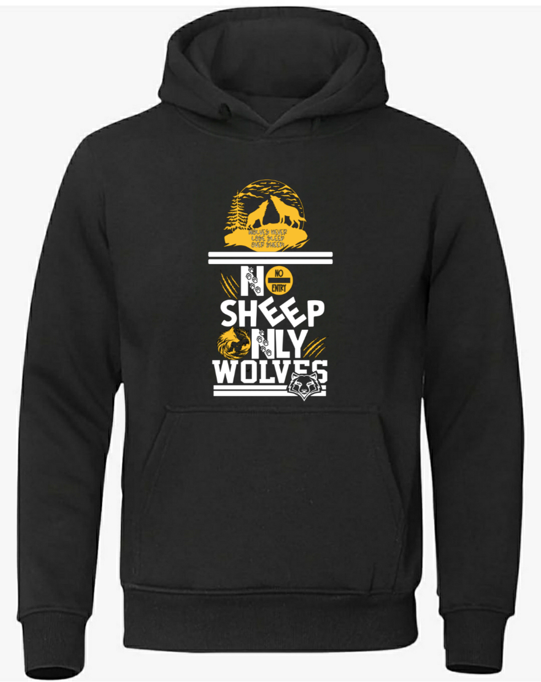 Stay stylish with the #NSOW Wolves logo Hoodie Jumper. This custom designed jumper features the new brand #NSOW which stands for NO SHEEP ONLY WOLVES, representing a wolf mentality in fashion. Be bold and stand out from the crowd with this unique and empowering piece. Join the pack and unleash your true self.