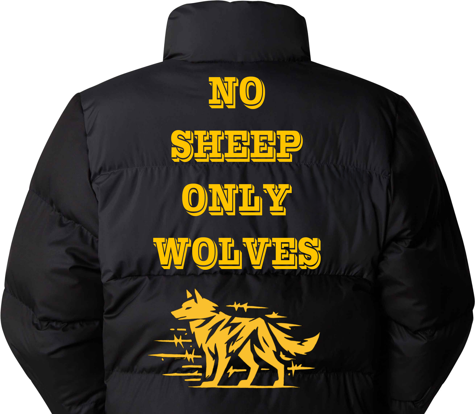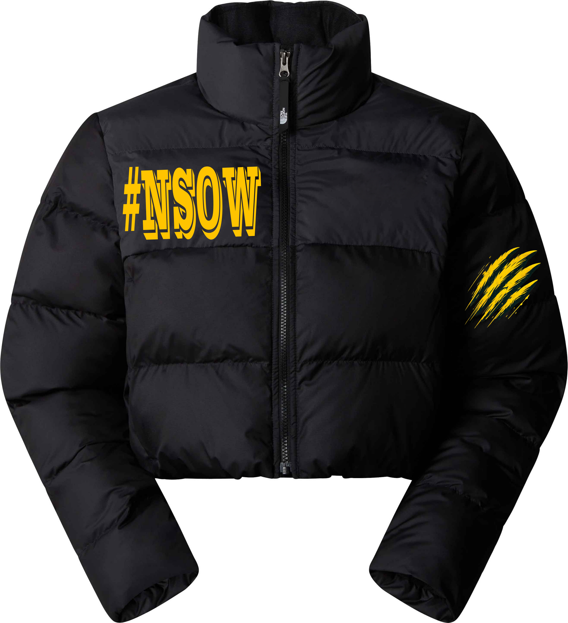 Stay stylish with the #NSOW cropped puffer jacket. This custom designed puffer jacket features the new brand #NSOW which stands for NO SHEEP ONLY WOLVES, representing a wolf mentality in fashion. Be bold and stand out from the crowd with this unique and empowering piece. Join the pack and unleash your true self.