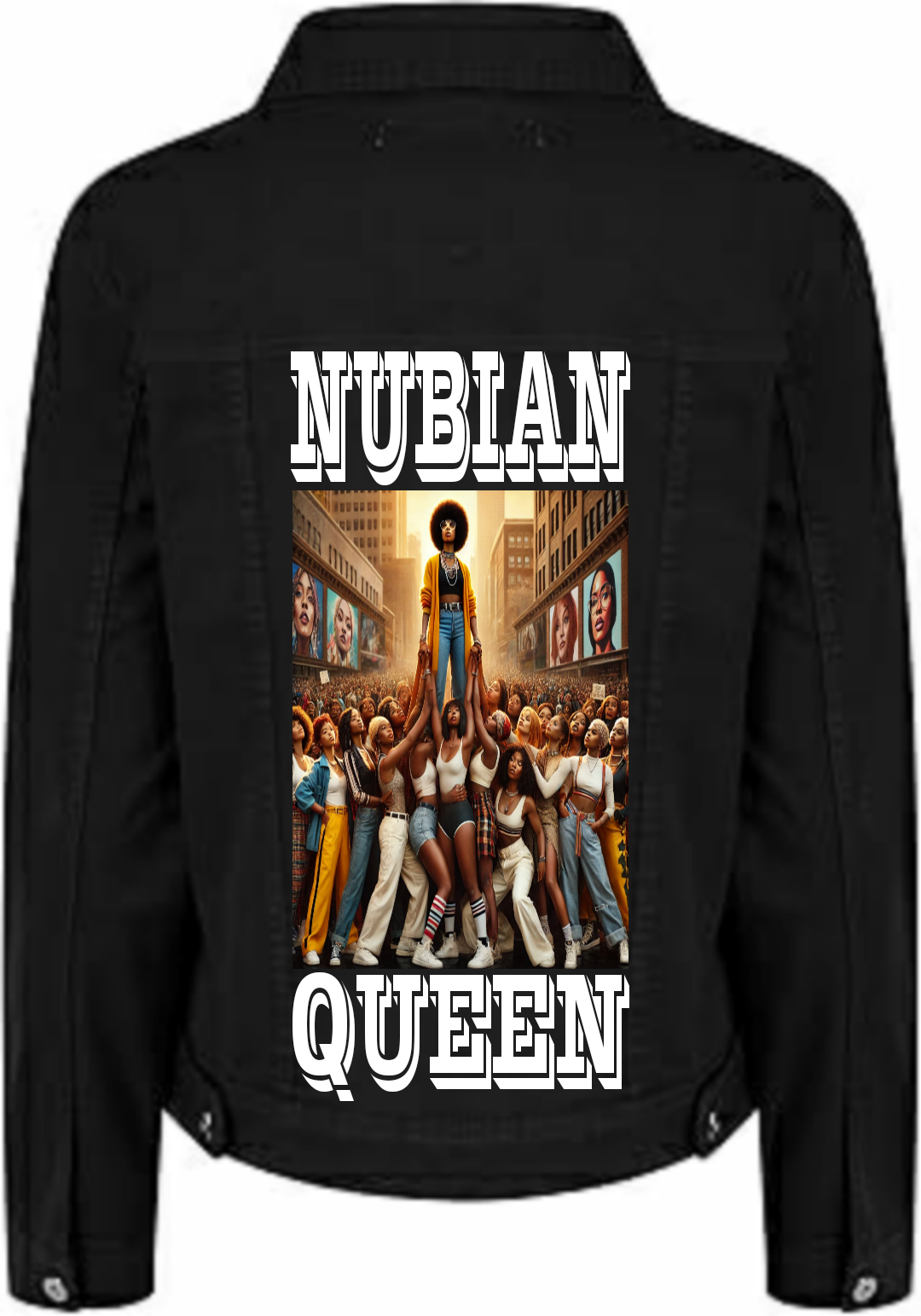 Expertly designed with a custom Nubian queen in abstract art, this denim jacket is a must-have for fashion enthusiasts. Made with high-quality denim, it offers both style and comfort. A perfect blend of culture and fashion, this jacket is truly unique and eye-catching.