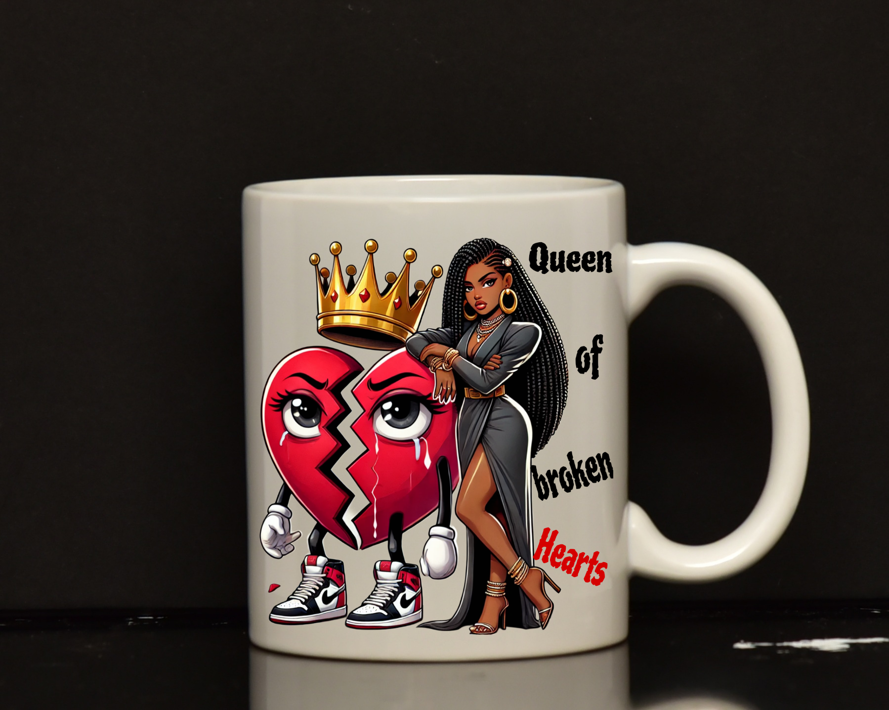 Upgrade your coffee/tea game with our Custom 11oz Queen of broken hearts Mug. Featuring a unique stylish design, this mug is custom made to add some love to your daily routine. Made with top-quality materials, this mug is perfect for any coffee/tea lover. Order now and break hearts with every sip.