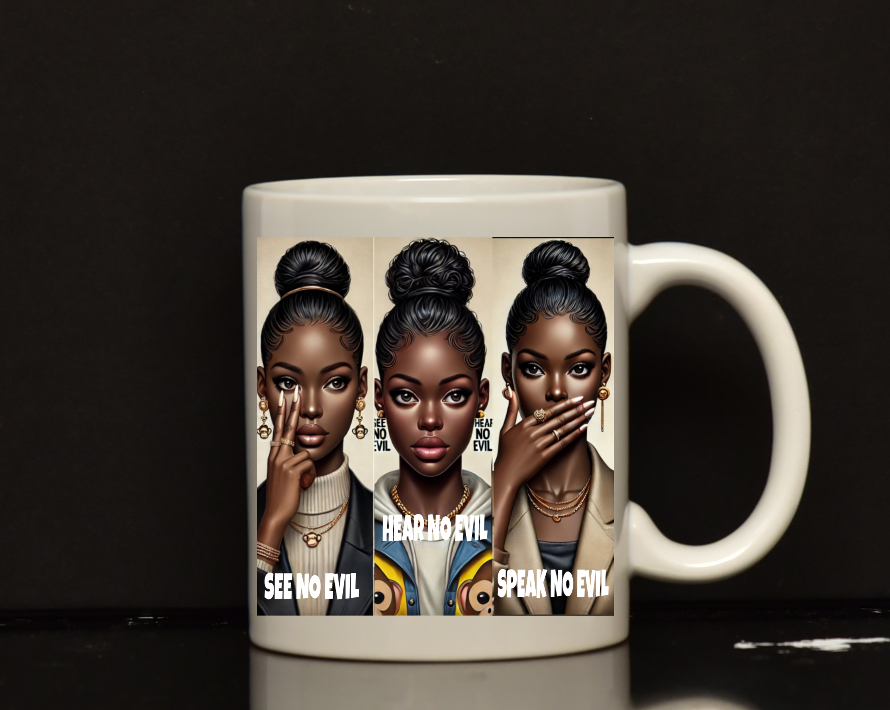 Introducing the See No Evil Mug, a custom-designed 11oz mug perfect for any coffee or tea lover. With adorable illustrations of the iconic "see no evil, hear no evil" monkeys, this mug adds a touch of fun to your daily routine. Enjoy your favourite beverage in style with this unique mug.