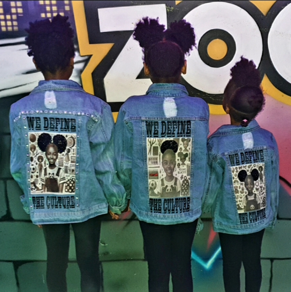 Expertly designed with a custom girl's We Define The Culture denim jacket is a must-have for fashion enthusiasts. Made with high-quality denim, it offers both style and comfort. A perfect blend of culture and fashion, this jacket is truly unique and eye-catching. Represent the beauty and importance of black culture while standing out in the crowd